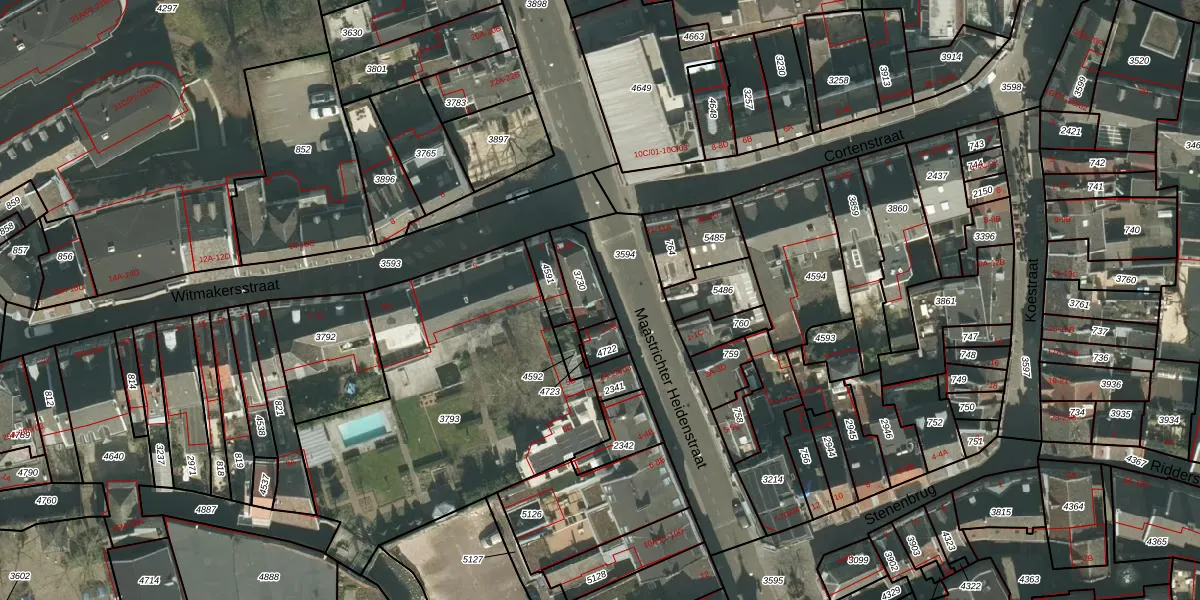 Witmakersstraat 1-B is gelegen op kadastraal perceel MTT00B3730. Deze kadastrale aanduiding is uniek en wordt gebruikt door het Kadaster om eigendomsrechten en andere zakelijke rechten vast te leggen. Het perceel maakt onderdeel uit van de kadastrale gemeente Maastricht.
