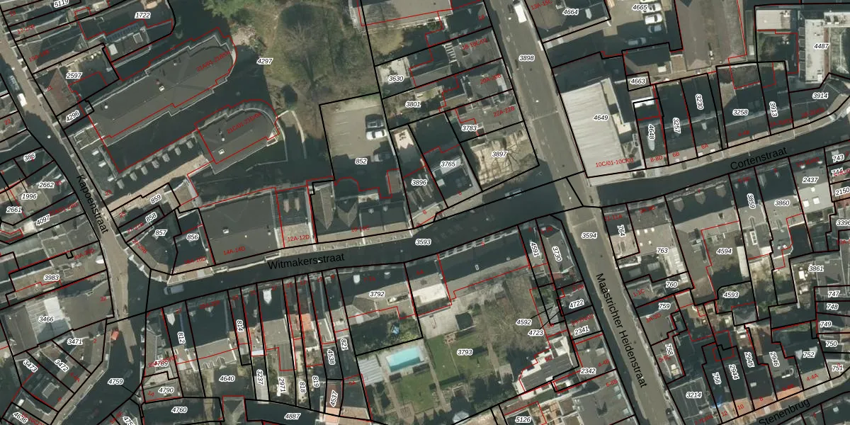 Witmakersstraat 8 is gelegen op kadastraal perceel MTT00B3896. Deze kadastrale aanduiding is uniek en wordt gebruikt door het Kadaster om eigendomsrechten en andere zakelijke rechten vast te leggen. Het perceel maakt onderdeel uit van de kadastrale gemeente Maastricht.