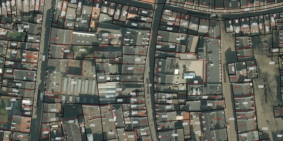 Wolfstraat 14 is gelegen op kadastraal perceel MTT00B1678. Deze kadastrale aanduiding is uniek en wordt gebruikt door het Kadaster om eigendomsrechten en andere zakelijke rechten vast te leggen. Het perceel maakt onderdeel uit van de kadastrale gemeente Maastricht.