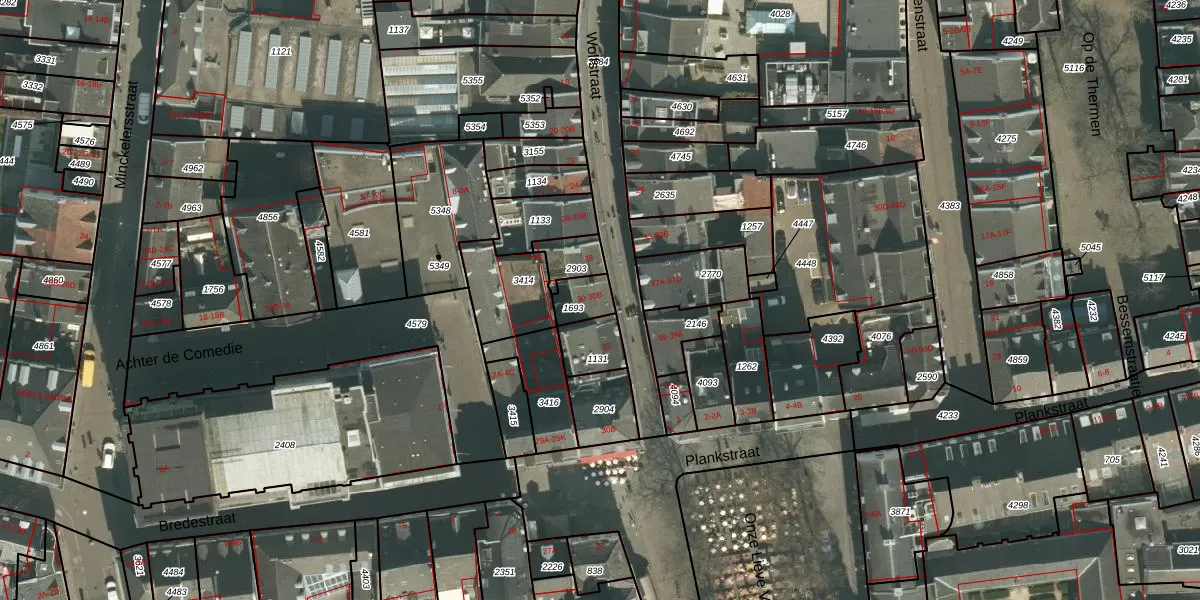 Het perceel waarop Wolfstraat 30 staat heeft een oppervlakte van 70 m². Dit is een klein perceel. De perceeloppervlakte wordt geregistreerd door het Kadaster. Gedetailleerde informatie over de maten van dit perceel kunt u vinden in het rapport Kadastrale kaart met maatvoering van Wolfstraat 30.