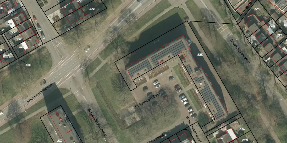 Het perceel waarop Wolkammersdreef 1-A staat heeft een oppervlakte van 2110 m². Dit is een zeer groot perceel. De perceeloppervlakte wordt geregistreerd door het Kadaster. Gedetailleerde informatie over de maten van dit perceel kunt u vinden in het rapport Kadastrale kaart met maatvoering van Wolkammersdreef 1-A.