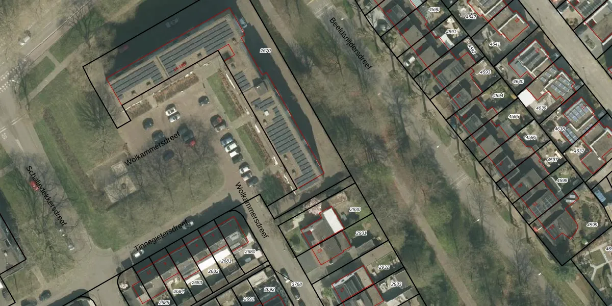 Het perceel waarop Wolkammersdreef 1-G-16 staat heeft een oppervlakte van 2110 m². Dit is een zeer groot perceel. De perceeloppervlakte wordt geregistreerd door het Kadaster. Gedetailleerde informatie over de maten van dit perceel kunt u vinden in het rapport Kadastrale kaart met maatvoering van Wolkammersdreef 1-G-16.
