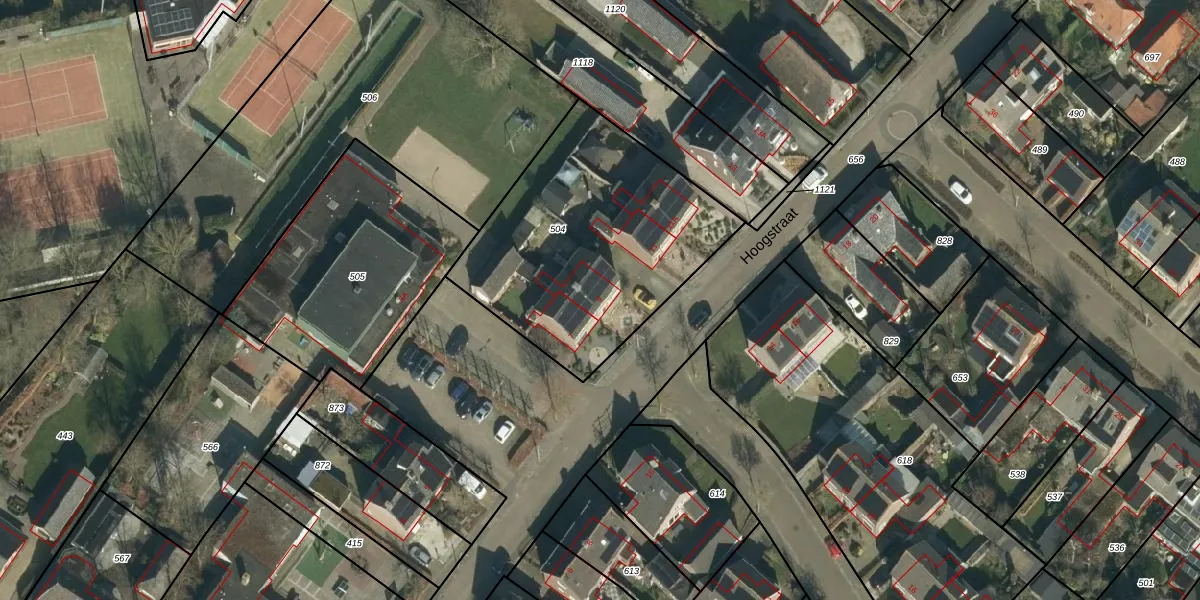 Het perceel waarop Hoogstraat 9 staat heeft een oppervlakte van 1191 m². Dit is een zeer groot perceel. De perceeloppervlakte wordt geregistreerd door het Kadaster. Gedetailleerde informatie over de maten van dit perceel kunt u vinden in het rapport Kadastrale kaart met maatvoering van Hoogstraat 9.