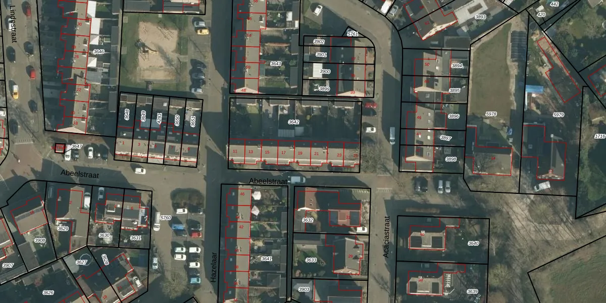 Abeelstraat 19 is gelegen op kadastraal perceel MDE01S3642. Deze kadastrale aanduiding is uniek en wordt gebruikt door het Kadaster om eigendomsrechten en andere zakelijke rechten vast te leggen. Het perceel maakt onderdeel uit van de kadastrale gemeente Made en Drimmelen.