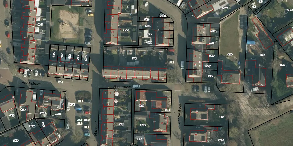 Abeelstraat 21 is gelegen op kadastraal perceel MDE01S3642. Deze kadastrale aanduiding is uniek en wordt gebruikt door het Kadaster om eigendomsrechten en andere zakelijke rechten vast te leggen. Het perceel maakt onderdeel uit van de kadastrale gemeente Made en Drimmelen.