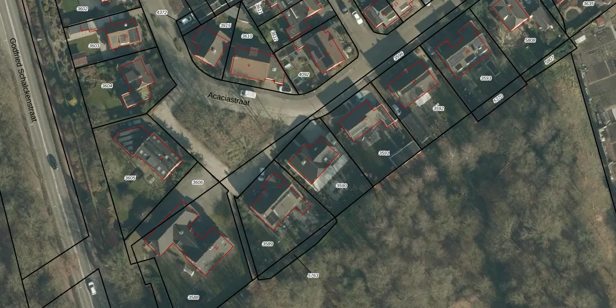 Acaciastraat 20 is gelegen op kadastraal perceel MDE01S3590. Deze kadastrale aanduiding is uniek en wordt gebruikt door het Kadaster om eigendomsrechten en andere zakelijke rechten vast te leggen. Het perceel maakt onderdeel uit van de kadastrale gemeente Made en Drimmelen.