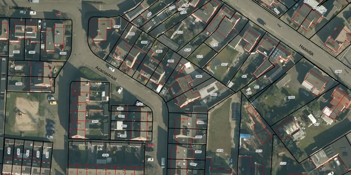 Acaciastraat 54 is gelegen op kadastraal perceel MDE01S3892. Deze kadastrale aanduiding is uniek en wordt gebruikt door het Kadaster om eigendomsrechten en andere zakelijke rechten vast te leggen. Het perceel maakt onderdeel uit van de kadastrale gemeente Made en Drimmelen.