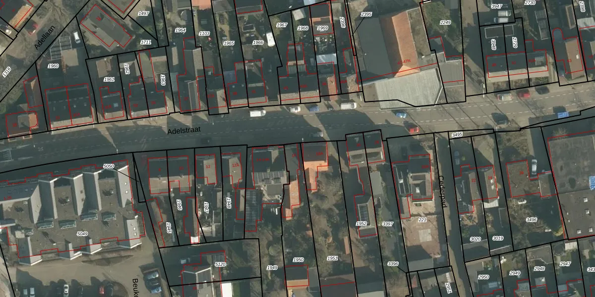 Gebruik de zoekbalk of klik op een perceel voor informatie over de adressen binnen dit perceel.