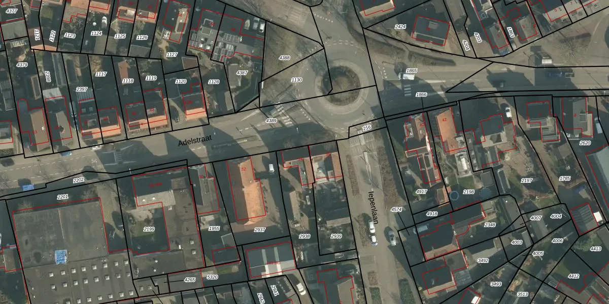 Adelstraat 34 is gelegen op kadastraal perceel MDE01S2938. Deze kadastrale aanduiding is uniek en wordt gebruikt door het Kadaster om eigendomsrechten en andere zakelijke rechten vast te leggen. Het perceel maakt onderdeel uit van de kadastrale gemeente Made en Drimmelen.