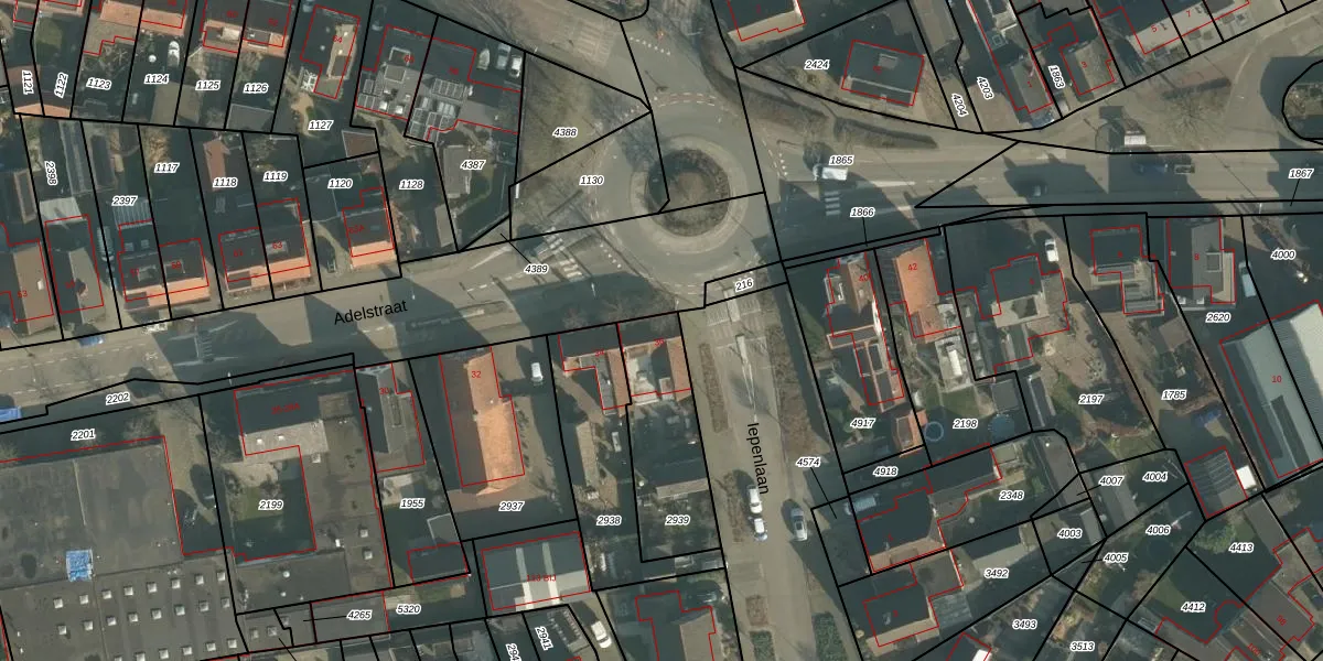 Adelstraat 36 is gelegen op kadastraal perceel MDE01S2939. Deze kadastrale aanduiding is uniek en wordt gebruikt door het Kadaster om eigendomsrechten en andere zakelijke rechten vast te leggen. Het perceel maakt onderdeel uit van de kadastrale gemeente Made en Drimmelen.