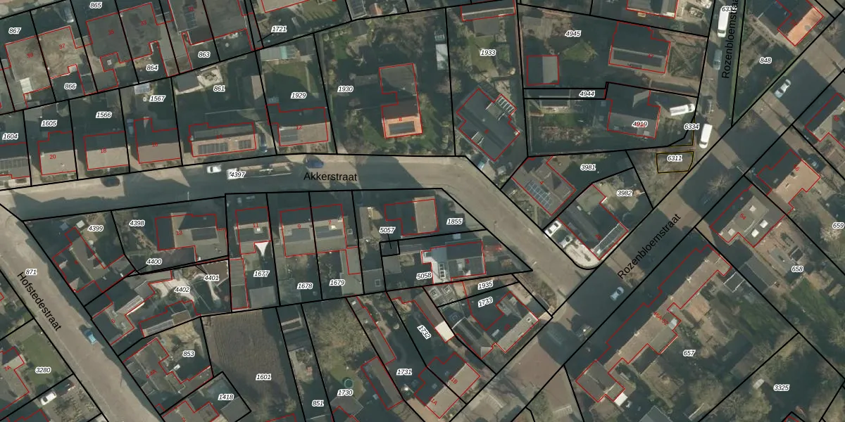 Akkerstraat 5 is gelegen op kadastraal perceel MDE01S1855. Deze kadastrale aanduiding is uniek en wordt gebruikt door het Kadaster om eigendomsrechten en andere zakelijke rechten vast te leggen. Het perceel maakt onderdeel uit van de kadastrale gemeente Made en Drimmelen.