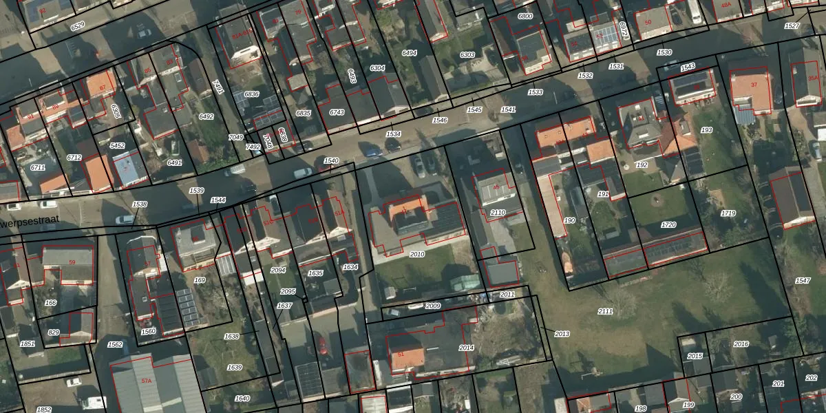 Het perceel waarop Antwerpsestraat 47 staat heeft een oppervlakte van 892 m². Dit is een groot perceel. De perceeloppervlakte wordt geregistreerd door het Kadaster. Gedetailleerde informatie over de maten van dit perceel kunt u vinden in het rapport Kadastrale kaart met maatvoering van Antwerpsestraat 47.