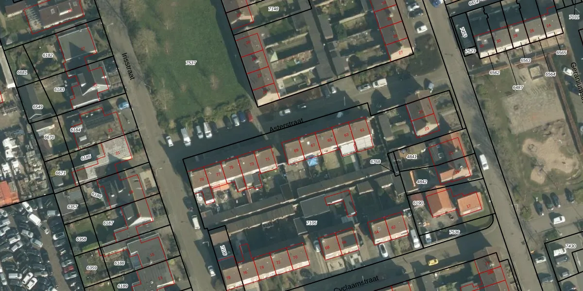 Het perceel waarop Asterstraat 69 staat heeft een oppervlakte van 3872 m². Dit is een zeer groot perceel. De perceeloppervlakte wordt geregistreerd door het Kadaster. Gedetailleerde informatie over de maten van dit perceel kunt u vinden in het rapport Kadastrale kaart met maatvoering van Asterstraat 69.