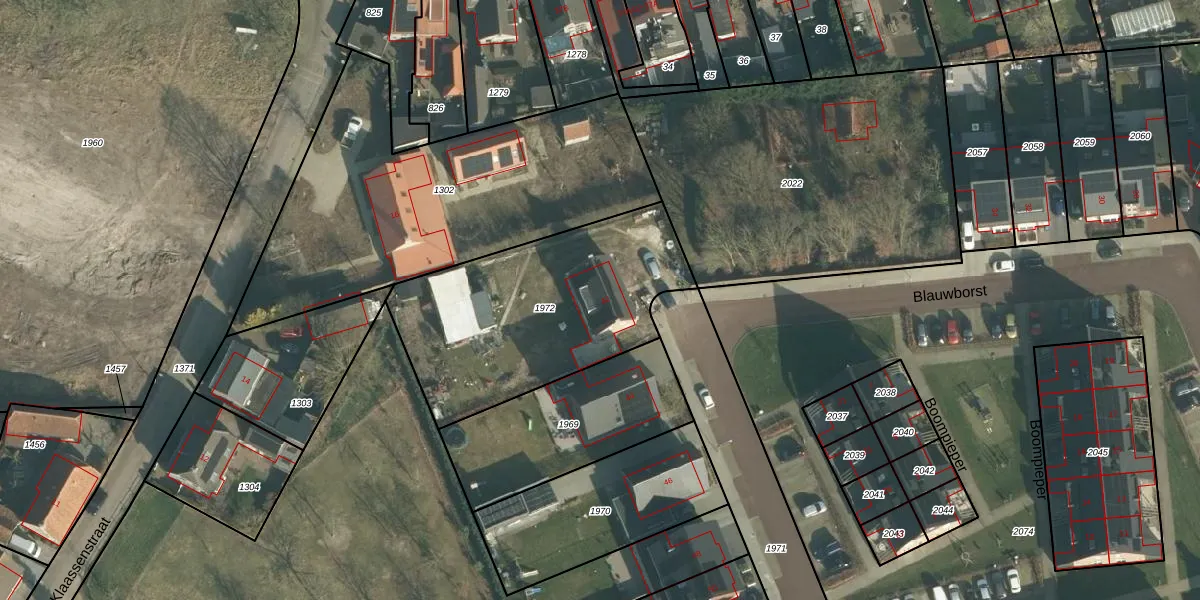 Blauwborst 42 is gelegen op kadastraal perceel MDE01R1972. Deze kadastrale aanduiding is uniek en wordt gebruikt door het Kadaster om eigendomsrechten en andere zakelijke rechten vast te leggen. Het perceel maakt onderdeel uit van de kadastrale gemeente Made en Drimmelen.