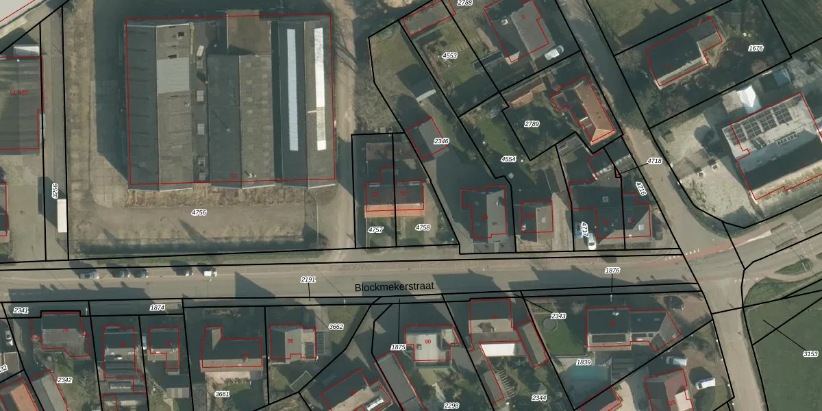 Blockmekerstraat 57 is gelegen op kadastraal perceel MDE01S4758. Deze kadastrale aanduiding is uniek en wordt gebruikt door het Kadaster om eigendomsrechten en andere zakelijke rechten vast te leggen. Het perceel maakt onderdeel uit van de kadastrale gemeente Made en Drimmelen.