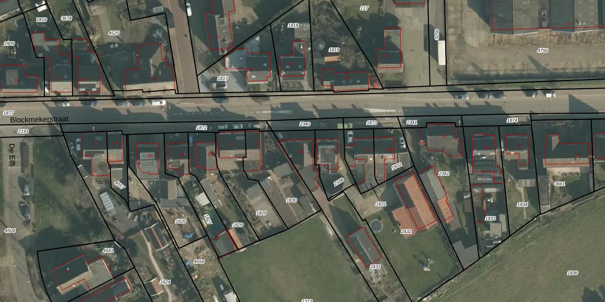 Het perceel waarop Blockmekerstraat 72-A staat heeft een oppervlakte van 630 m². Dit is een groot perceel. De perceeloppervlakte wordt geregistreerd door het Kadaster. Gedetailleerde informatie over de maten van dit perceel kunt u vinden in het rapport Kadastrale kaart met maatvoering van Blockmekerstraat 72-A.