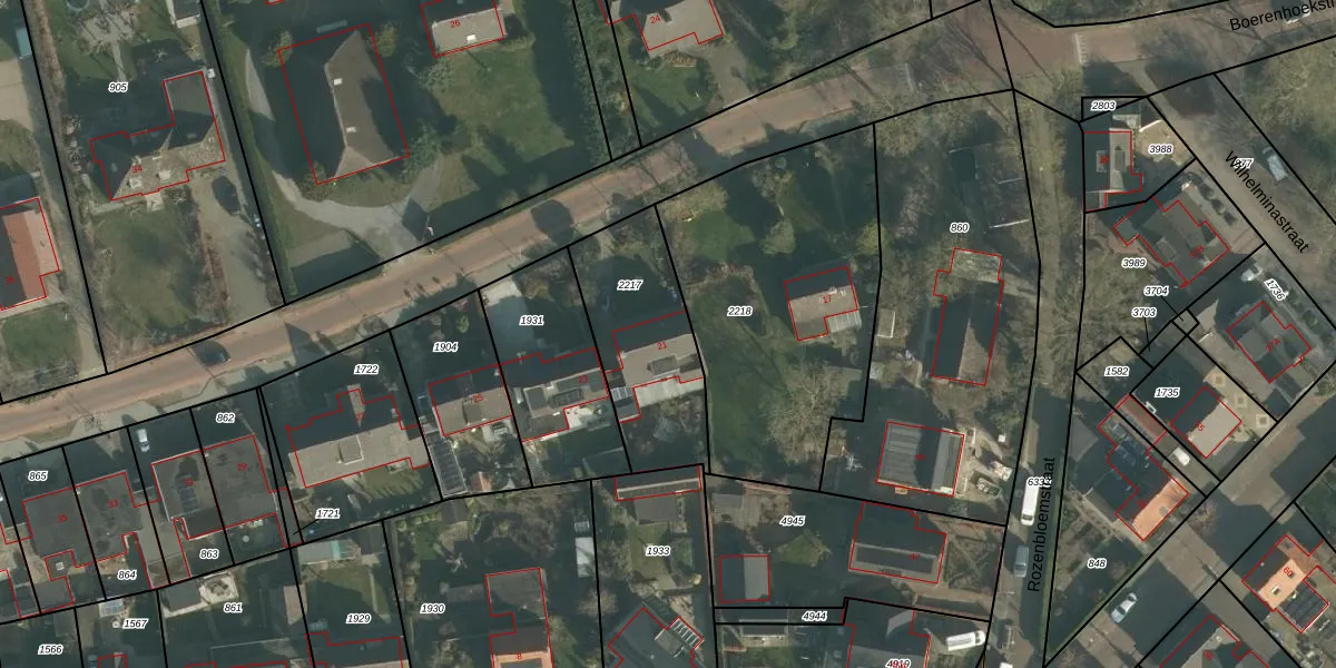 Het perceel waarop Boerenhoekstraat 21 staat heeft een oppervlakte van 523 m². Dit is een groot perceel. De perceeloppervlakte wordt geregistreerd door het Kadaster. Gedetailleerde informatie over de maten van dit perceel kunt u vinden in het rapport Kadastrale kaart met maatvoering van Boerenhoekstraat 21.