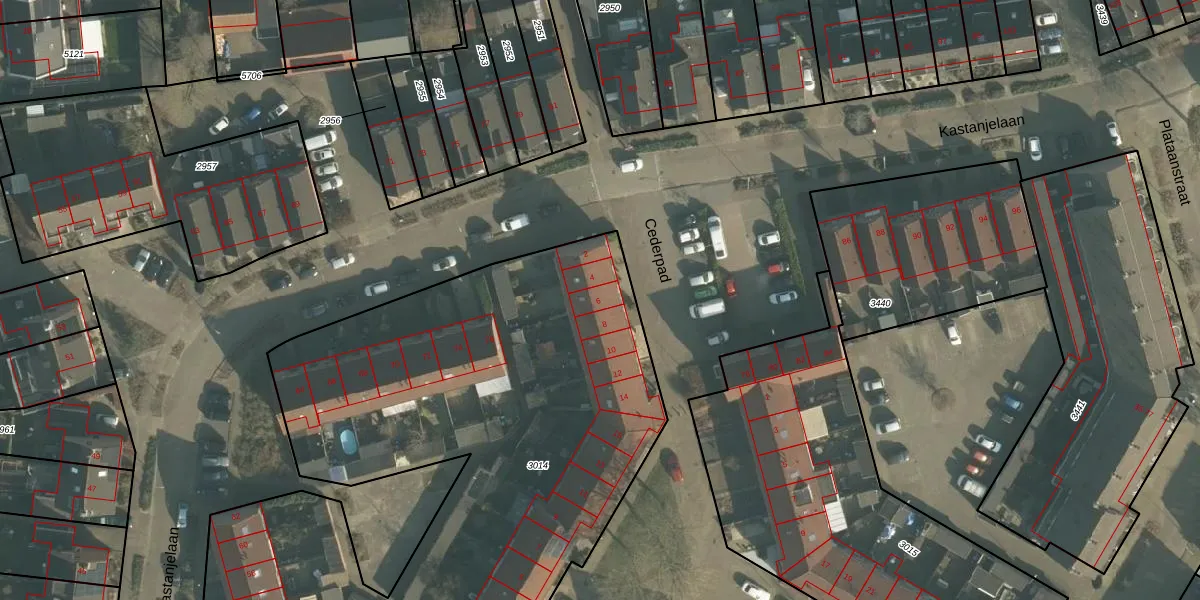 Het perceel waarop Cederpad 6 staat heeft een oppervlakte van 4176 m². Dit is een zeer groot perceel. De perceeloppervlakte wordt geregistreerd door het Kadaster. Gedetailleerde informatie over de maten van dit perceel kunt u vinden in het rapport Kadastrale kaart met maatvoering van Cederpad 6.