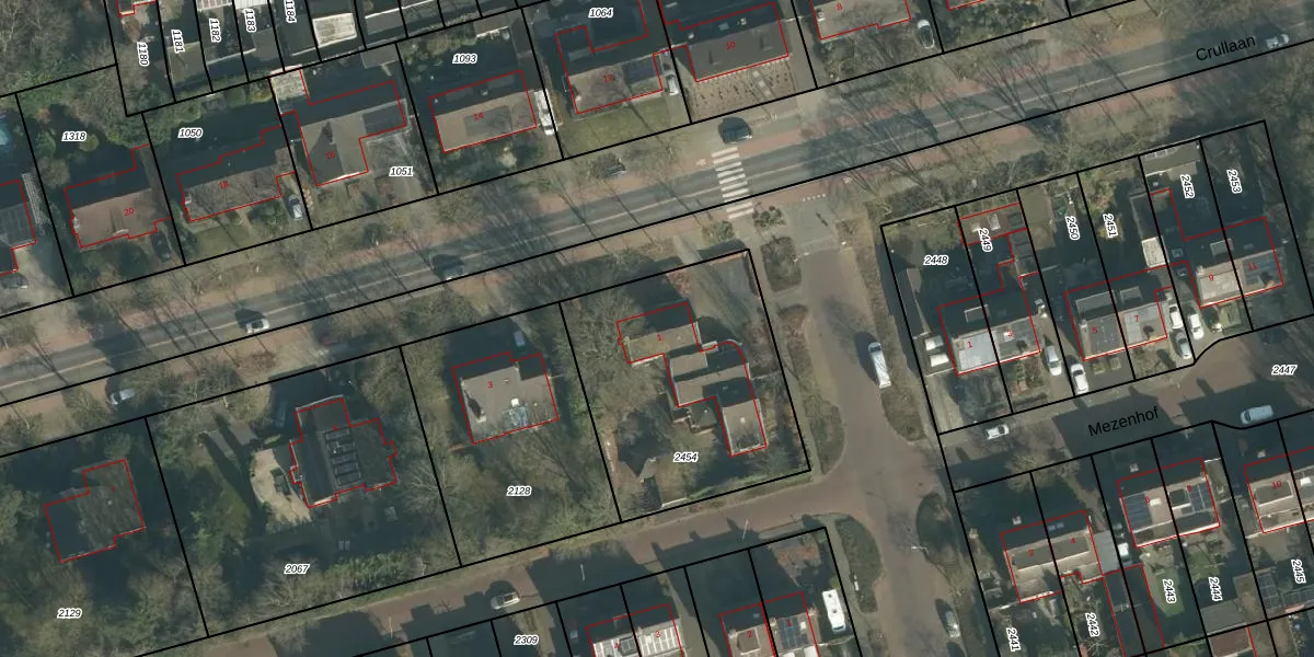 Het perceel waarop Crullaan 1 staat heeft een oppervlakte van 1047 m². Dit is een zeer groot perceel. De perceeloppervlakte wordt geregistreerd door het Kadaster. Gedetailleerde informatie over de maten van dit perceel kunt u vinden in het rapport Kadastrale kaart met maatvoering van Crullaan 1.