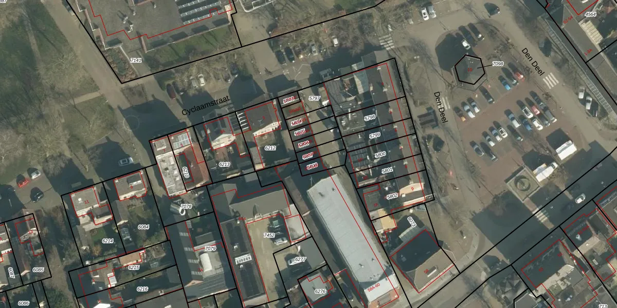 Cyclaamstraat 1-D-GAR is gelegen op kadastraal perceel MDE01H5807. Deze kadastrale aanduiding is uniek en wordt gebruikt door het Kadaster om eigendomsrechten en andere zakelijke rechten vast te leggen. Het perceel maakt onderdeel uit van de kadastrale gemeente Made en Drimmelen.