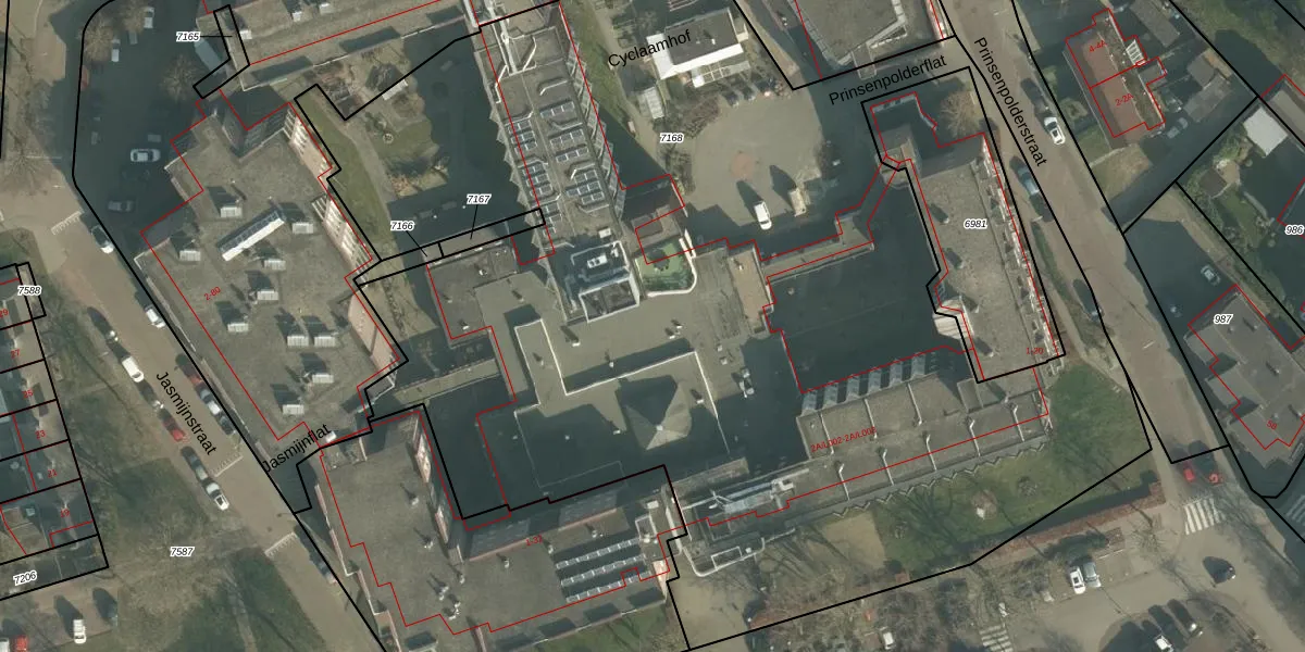 Het perceel waarop Cyclaamstraat 2-A-03 staat heeft een oppervlakte van 7895 m². Dit is een zeer groot perceel. De perceeloppervlakte wordt geregistreerd door het Kadaster. Gedetailleerde informatie over de maten van dit perceel kunt u vinden in het rapport Kadastrale kaart met maatvoering van Cyclaamstraat 2-A-03.