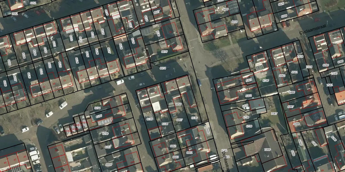 Gebruik de zoekbalk of klik op een perceel voor informatie over de adressen binnen dit perceel.