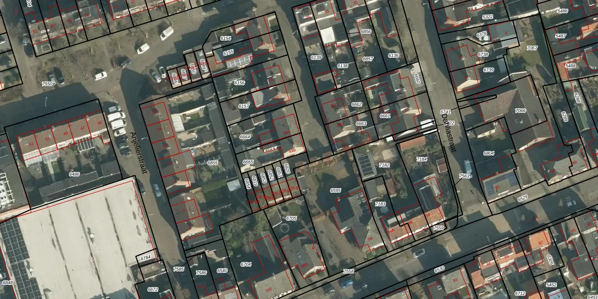 Gebruik de zoekbalk of klik op een perceel voor informatie over de adressen binnen dit perceel.