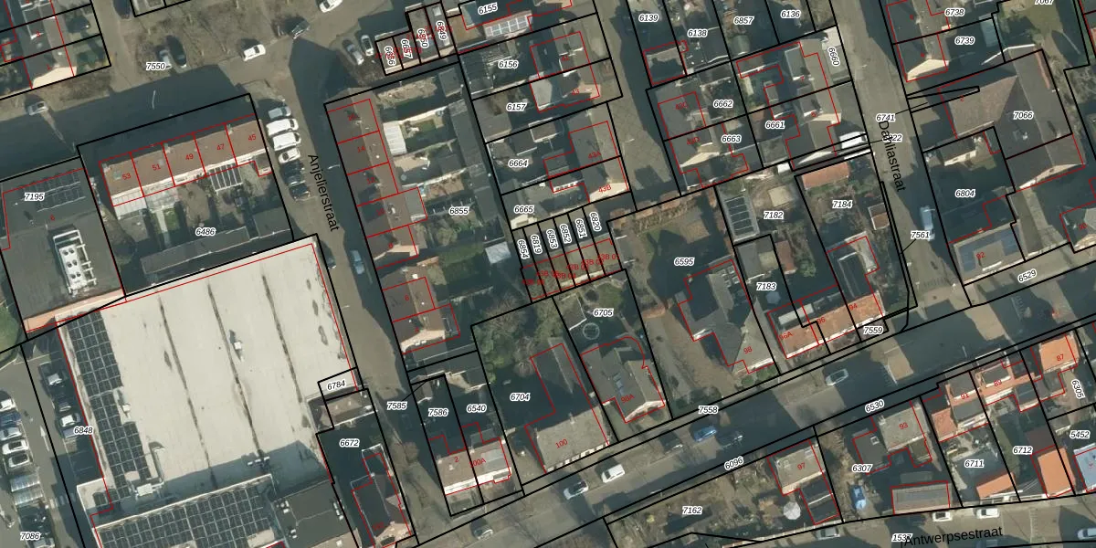 Gebruik de zoekbalk of klik op een perceel voor informatie over de adressen binnen dit perceel.