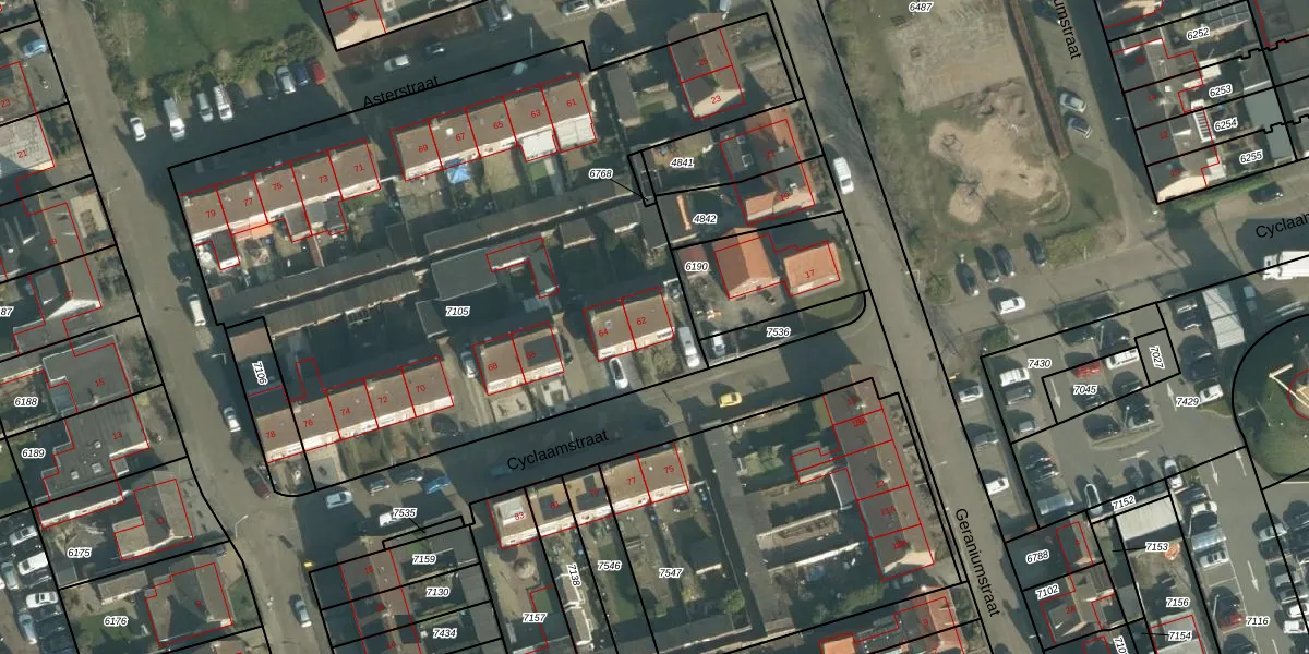 Cyclaamstraat 62 is gelegen op kadastraal perceel MDE01H7105. Deze kadastrale aanduiding is uniek en wordt gebruikt door het Kadaster om eigendomsrechten en andere zakelijke rechten vast te leggen. Het perceel maakt onderdeel uit van de kadastrale gemeente Made en Drimmelen.