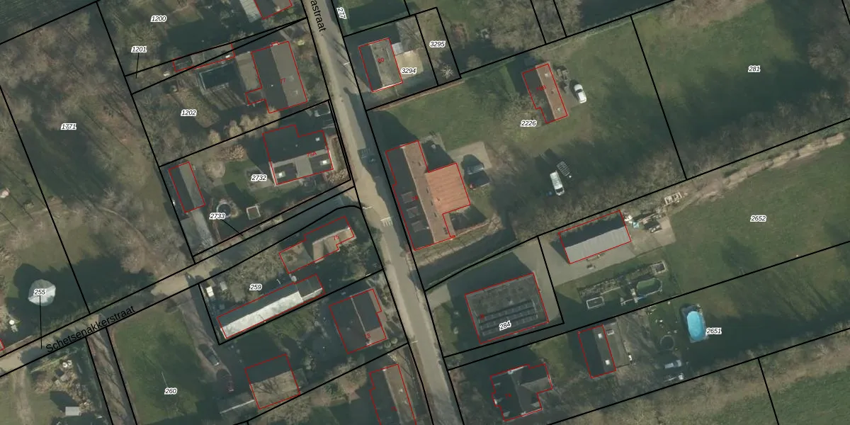 Het perceel waarop het adres ligt is MDE01-T-2226. De afkorting 'MDE01' staat voor kadastrale gemeente Made en Drimmelen. De gemiddelde perceelgrootte in Made en Drimmelen is 7290,57 m². Dit perceel is kleiner: de perceeloppervlakte bedraagt 2809 m². Het grootste perceel in de kadastrale gemeente is 3,79 km². Het kleinste perceel heeft een oppervlakte van 0 m². Er zijn 3 adressen aanwezig op het perceel. De huidige grenzen van het perceel zijn digitaal in de Basisregistratie Kadaster (BRK) geregistreerd op 17-12-2024.