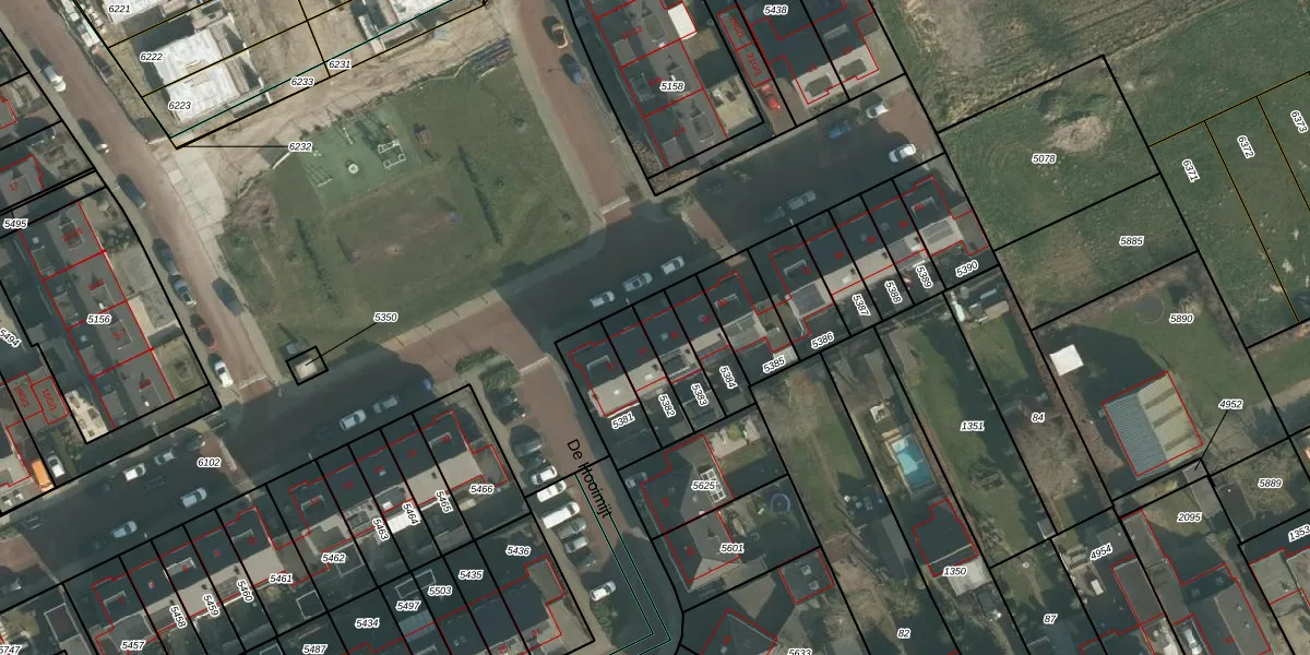 Het perceel waarop het adres ligt is MDE01-S-5383. De afkorting 'MDE01' staat voor kadastrale gemeente Made en Drimmelen. Het perceel is kleiner dan gemiddeld in Made en Drimmelen. Het perceel is 118 m² groot, terwijl het gemiddelde ligt op 7289,69 m². De grootste perceeloppervlakte in de kadastrale gemeente is 3,79 km². De kleinste oppervlakte bedraagt 0 m². Dit is het enige adres dat aanwezig is op het perceel. In de Basisregistratie Kadaster (BRK) werden de grenzen van het perceel geregistreerd op 12-05-2015.