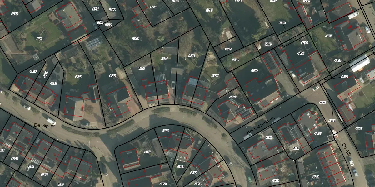Het perceel waarop De Gijster 72 staat heeft een oppervlakte van 527 m². Dit is een groot perceel. De perceeloppervlakte wordt geregistreerd door het Kadaster. Gedetailleerde informatie over de maten van dit perceel kunt u vinden in het rapport Kadastrale kaart met maatvoering van De Gijster 72.