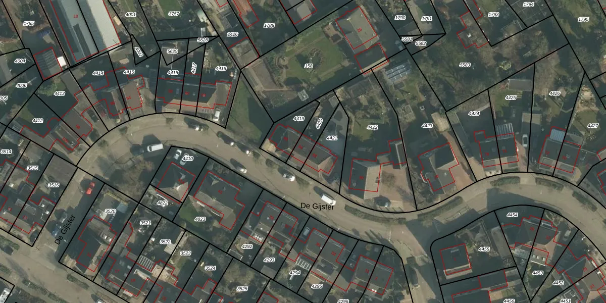 Het perceel waarop De Gijster 84 staat heeft een oppervlakte van 155 m². Dit is een middelgroot perceel. De perceeloppervlakte wordt geregistreerd door het Kadaster. Gedetailleerde informatie over de maten van dit perceel kunt u vinden in het rapport Kadastrale kaart met maatvoering van De Gijster 84.