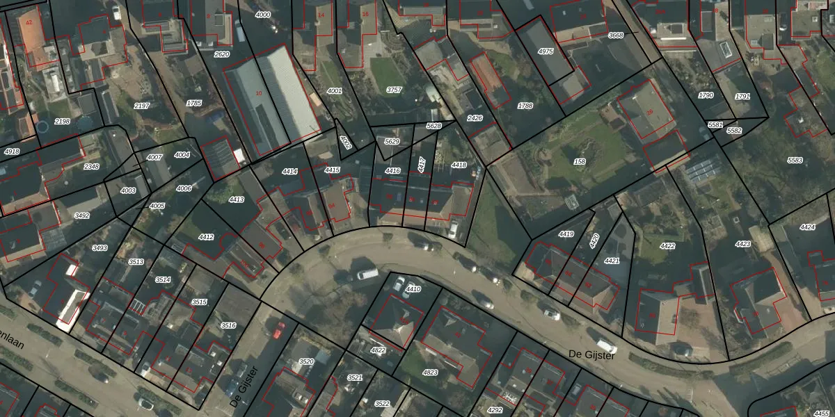 Het perceel waarop De Gijster 90 staat heeft een oppervlakte van 121 m². Dit is een middelgroot perceel. De perceeloppervlakte wordt geregistreerd door het Kadaster. Gedetailleerde informatie over de maten van dit perceel kunt u vinden in het rapport Kadastrale kaart met maatvoering van De Gijster 90.