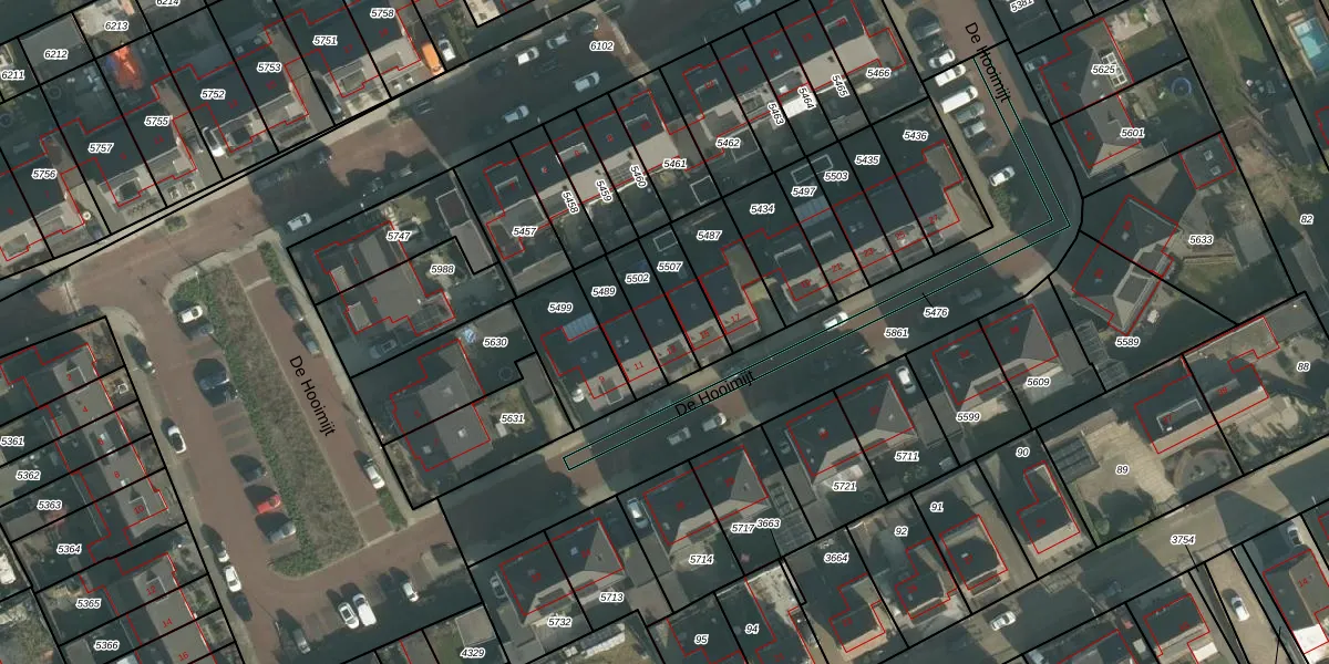 De Hooimijt 13 is gelegen op kadastraal perceel MDE01S5502. Deze kadastrale aanduiding is uniek en wordt gebruikt door het Kadaster om eigendomsrechten en andere zakelijke rechten vast te leggen. Het perceel maakt onderdeel uit van de kadastrale gemeente Made en Drimmelen.