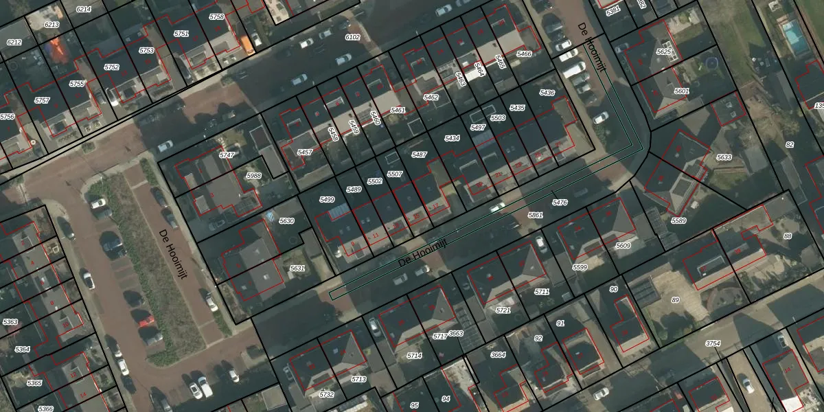 De Hooimijt 15 is gelegen op kadastraal perceel MDE01S5507. Deze kadastrale aanduiding is uniek en wordt gebruikt door het Kadaster om eigendomsrechten en andere zakelijke rechten vast te leggen. Het perceel maakt onderdeel uit van de kadastrale gemeente Made en Drimmelen.