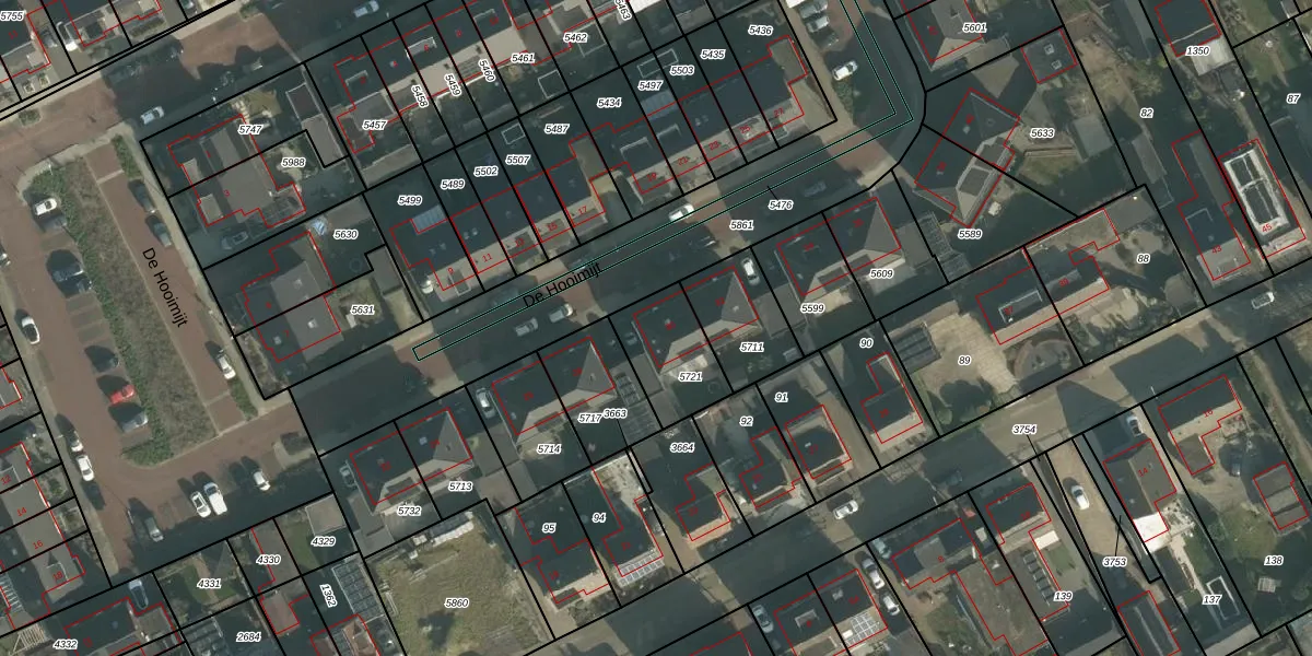 De Hooimijt 30 is gelegen op kadastraal perceel MDE01S5721. Deze kadastrale aanduiding is uniek en wordt gebruikt door het Kadaster om eigendomsrechten en andere zakelijke rechten vast te leggen. Het perceel maakt onderdeel uit van de kadastrale gemeente Made en Drimmelen.