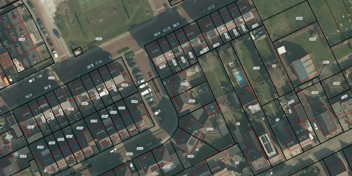 De Hooimijt 44 is gelegen op kadastraal perceel MDE01S5625. Deze kadastrale aanduiding is uniek en wordt gebruikt door het Kadaster om eigendomsrechten en andere zakelijke rechten vast te leggen. Het perceel maakt onderdeel uit van de kadastrale gemeente Made en Drimmelen.