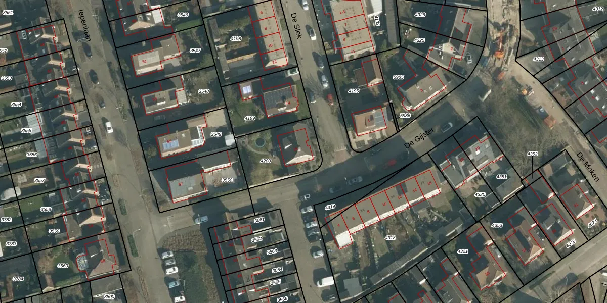 De Slek 16 is gelegen op kadastraal perceel MDE01S4200. Deze kadastrale aanduiding is uniek en wordt gebruikt door het Kadaster om eigendomsrechten en andere zakelijke rechten vast te leggen. Het perceel maakt onderdeel uit van de kadastrale gemeente Made en Drimmelen.