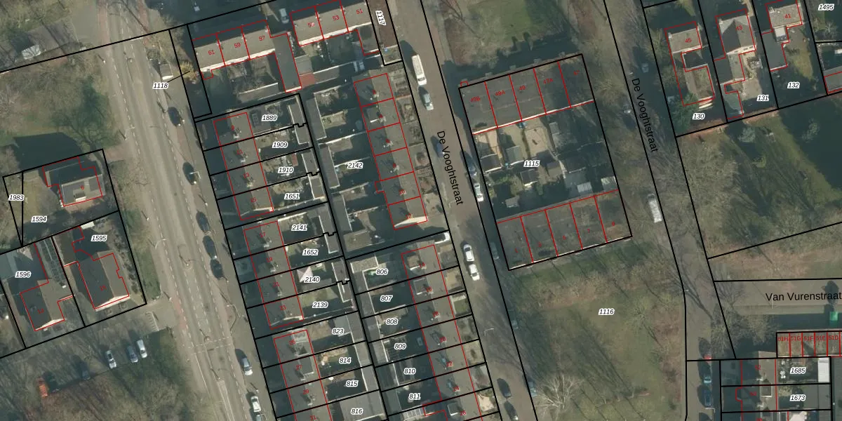 Het perceel waarop De Vooghtstraat 12 staat heeft een oppervlakte van 2055 m². Dit is een zeer groot perceel. De perceeloppervlakte wordt geregistreerd door het Kadaster. Gedetailleerde informatie over de maten van dit perceel kunt u vinden in het rapport Kadastrale kaart met maatvoering van De Vooghtstraat 12.