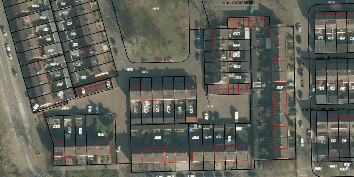 Het perceel waarop De Vooghtstraat 40 staat heeft een oppervlakte van 166 m². Dit is een middelgroot perceel. De perceeloppervlakte wordt geregistreerd door het Kadaster. Gedetailleerde informatie over de maten van dit perceel kunt u vinden in het rapport Kadastrale kaart met maatvoering van De Vooghtstraat 40.