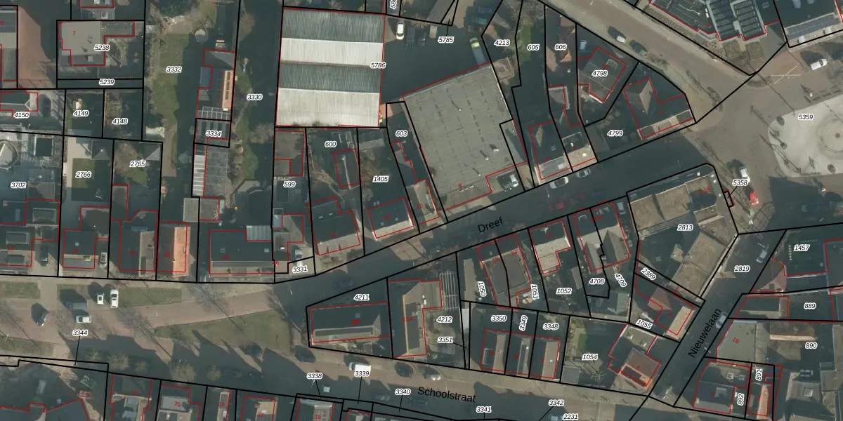Gebruik de zoekbalk of klik op een perceel voor informatie over de adressen binnen dit perceel.