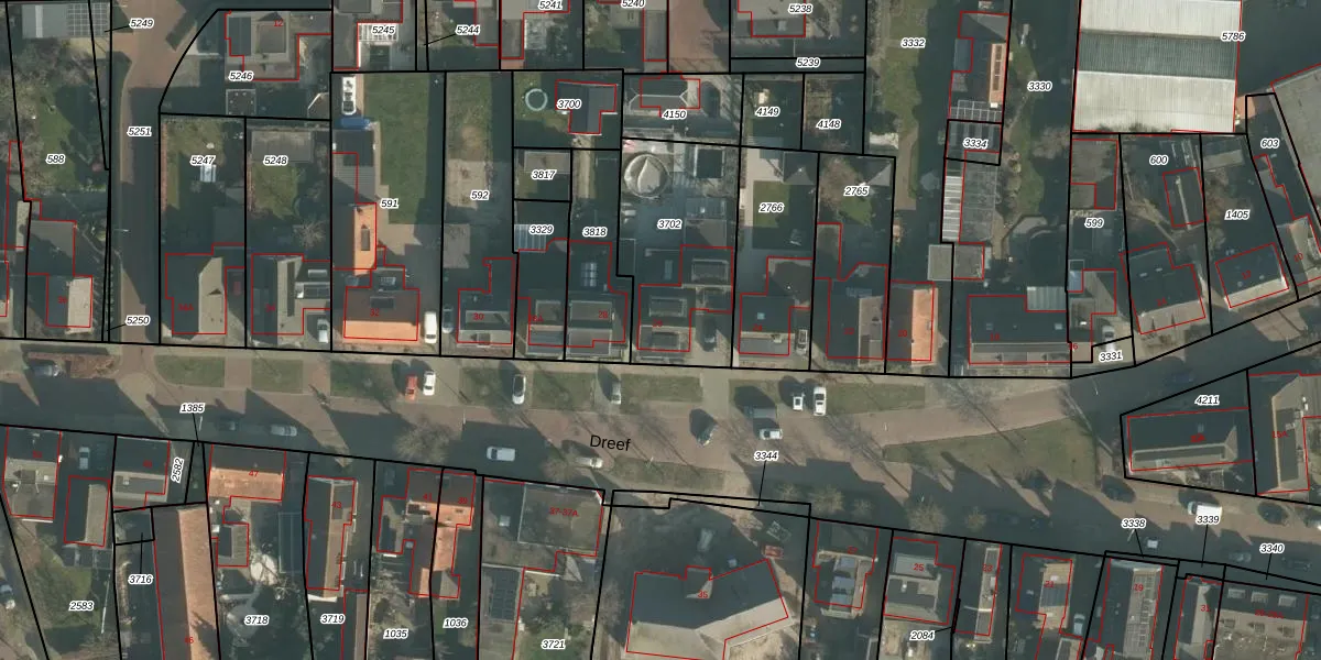 Het perceel waarop Dreef 26 staat heeft een oppervlakte van 579 m². Dit is een groot perceel. De perceeloppervlakte wordt geregistreerd door het Kadaster. Gedetailleerde informatie over de maten van dit perceel kunt u vinden in het rapport Kadastrale kaart met maatvoering van Dreef 26.