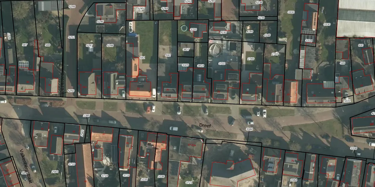 Gebruik de zoekbalk of klik op een perceel voor informatie over de adressen binnen dit perceel.