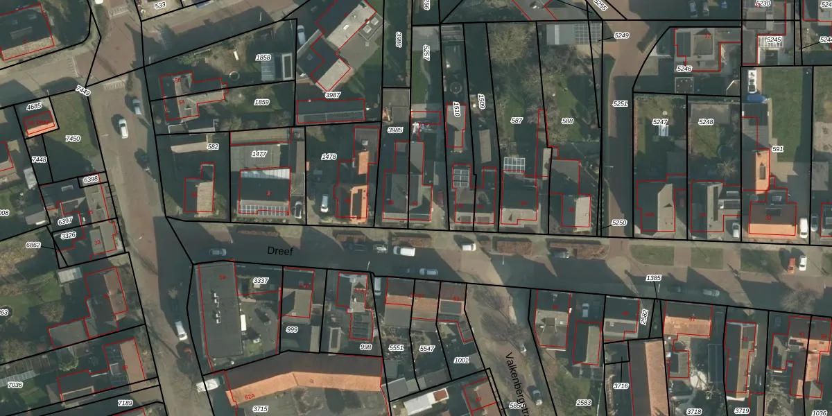 Het perceel waarop Dreef 44 staat heeft een oppervlakte van 405 m². Dit is een groot perceel. De perceeloppervlakte wordt geregistreerd door het Kadaster. Gedetailleerde informatie over de maten van dit perceel kunt u vinden in het rapport Kadastrale kaart met maatvoering van Dreef 44.