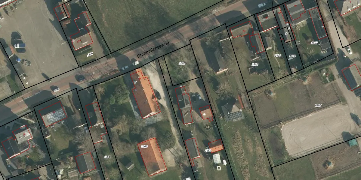 Het perceel waarop Drimmelenseweg 28 staat heeft een oppervlakte van 3282 m². Dit is een zeer groot perceel. De perceeloppervlakte wordt geregistreerd door het Kadaster. Gedetailleerde informatie over de maten van dit perceel kunt u vinden in het rapport Kadastrale kaart met maatvoering van Drimmelenseweg 28.