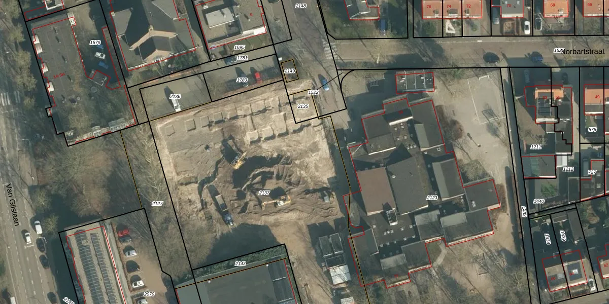 Het perceel waarop het adres ligt is MDE01-R-2137. De afkorting 'MDE01' staat voor kadastrale gemeente Made en Drimmelen. Het perceel is 3351 m² groot. Dat is kleiner dan de gemiddelde perceeloppervlakte in Made en Drimmelen, dat op 7295,91 m² ligt. Het kleinste perceel in de kadastrale gemeente is 0 m² groot. De grootste perceeloppervlakte is 3,79 km². Op het perceel zijn 12 adressen aanwezig. In de Basisregistratie Kadaster (BRK) werden de grenzen van het perceel geregistreerd op 13-03-2025.