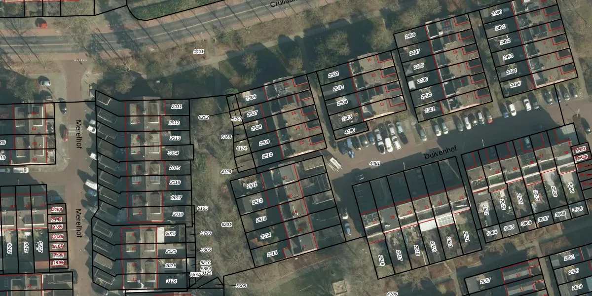 Het perceel waarop Duivenhof 22 staat heeft een oppervlakte van 132 m². Dit is een middelgroot perceel. De perceeloppervlakte wordt geregistreerd door het Kadaster. Gedetailleerde informatie over de maten van dit perceel kunt u vinden in het rapport Kadastrale kaart met maatvoering van Duivenhof 22.