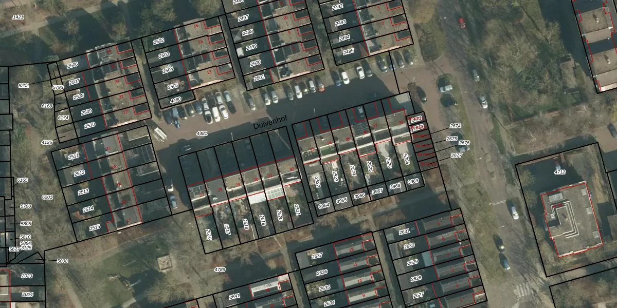 Het perceel waarop Duivenhof 33 staat heeft een oppervlakte van 160 m². Dit is een middelgroot perceel. De perceeloppervlakte wordt geregistreerd door het Kadaster. Gedetailleerde informatie over de maten van dit perceel kunt u vinden in het rapport Kadastrale kaart met maatvoering van Duivenhof 33.