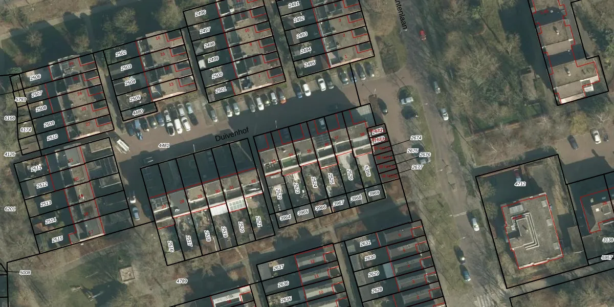 Het perceel waarop Duivenhof 35 staat heeft een oppervlakte van 156 m². Dit is een middelgroot perceel. De perceeloppervlakte wordt geregistreerd door het Kadaster. Gedetailleerde informatie over de maten van dit perceel kunt u vinden in het rapport Kadastrale kaart met maatvoering van Duivenhof 35.